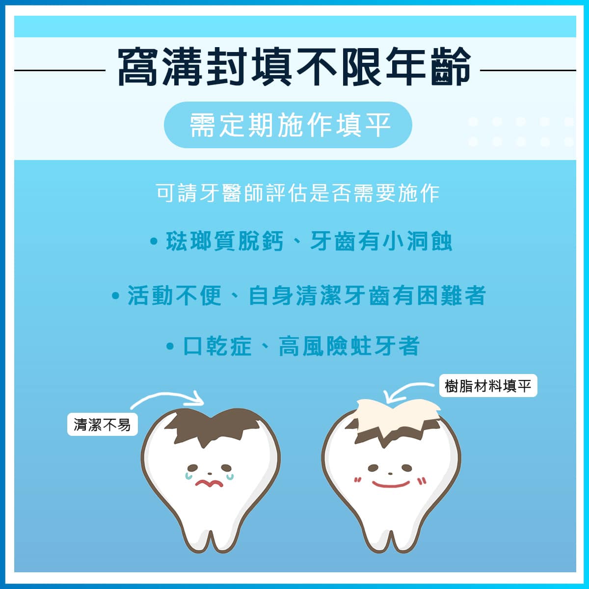 也別忘了維持良好清潔習慣、定期回診填補